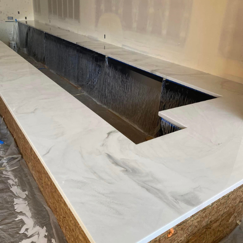Unlike stone we are not limited to slab size, stone availability,or colors. We take your vision and create uniquely tailored surfaces customized to your choice of colors, design, & sheen.